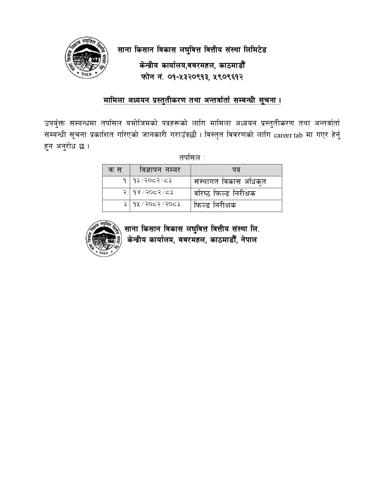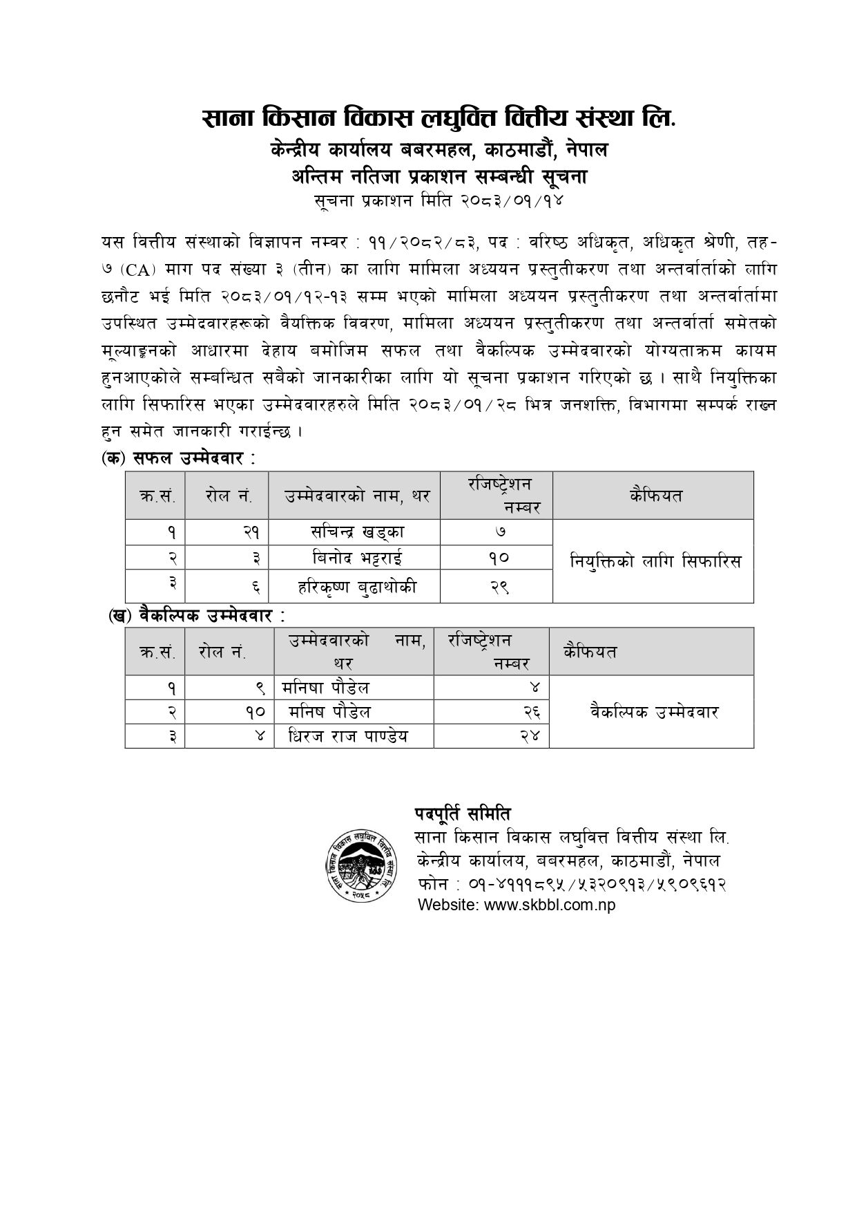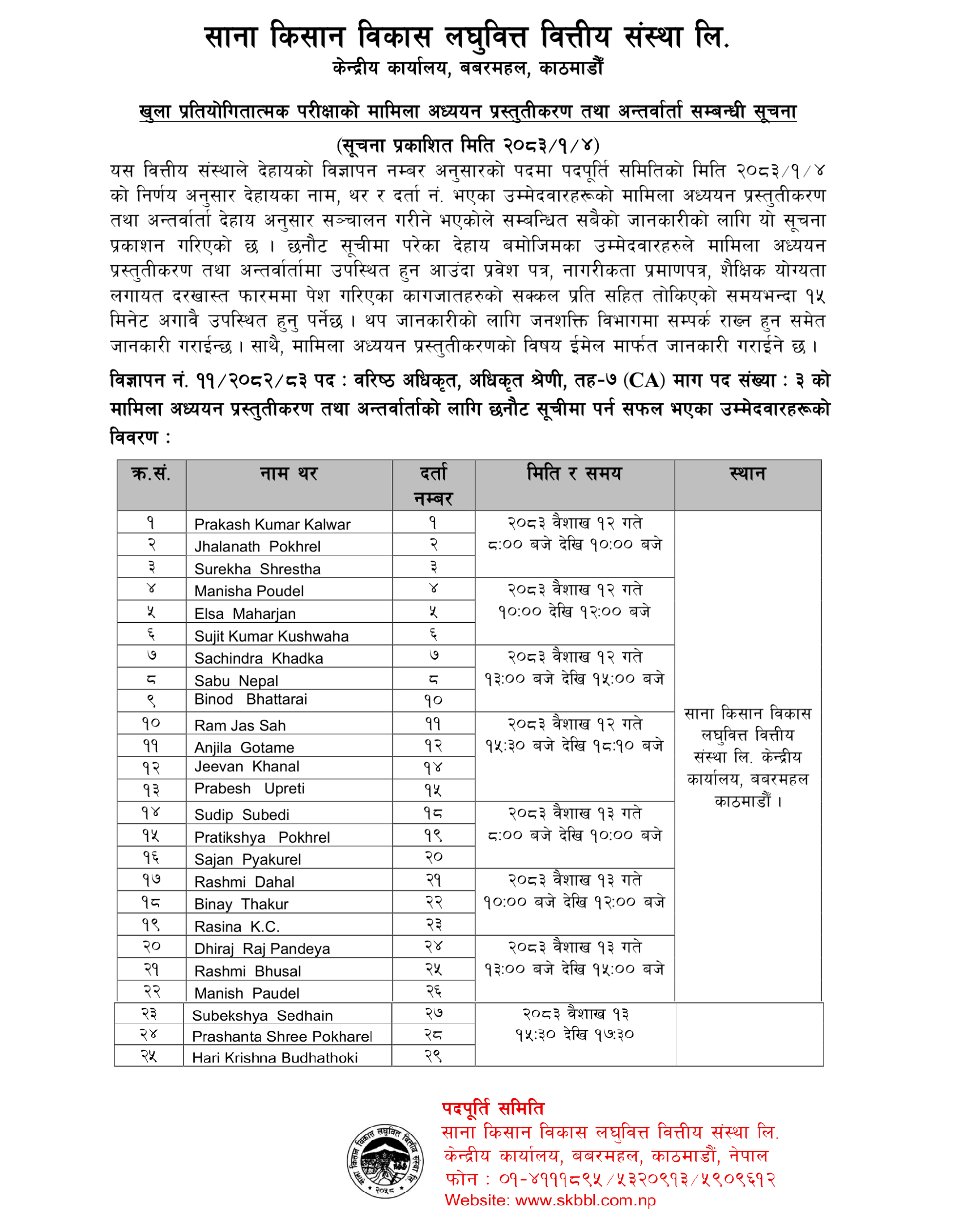 Sana Kisan Bikas Laghubitta Bittiyasanstha Ltd. (SKBBL) formerly known as Sana Kisan Bikas Bank Ltd. was established on July 6, 2001 under the Companies Act, 2053 (1997). Later, with the Execution of Bank and financial Institution Act, 2073, the bank was renamed as Sana Kisan Bikas Laghubitta Bittiyasanstha Ltd. (SKBBL). After Merger of two esteemed wholesale lending Microfinance Institution namely RMDC.